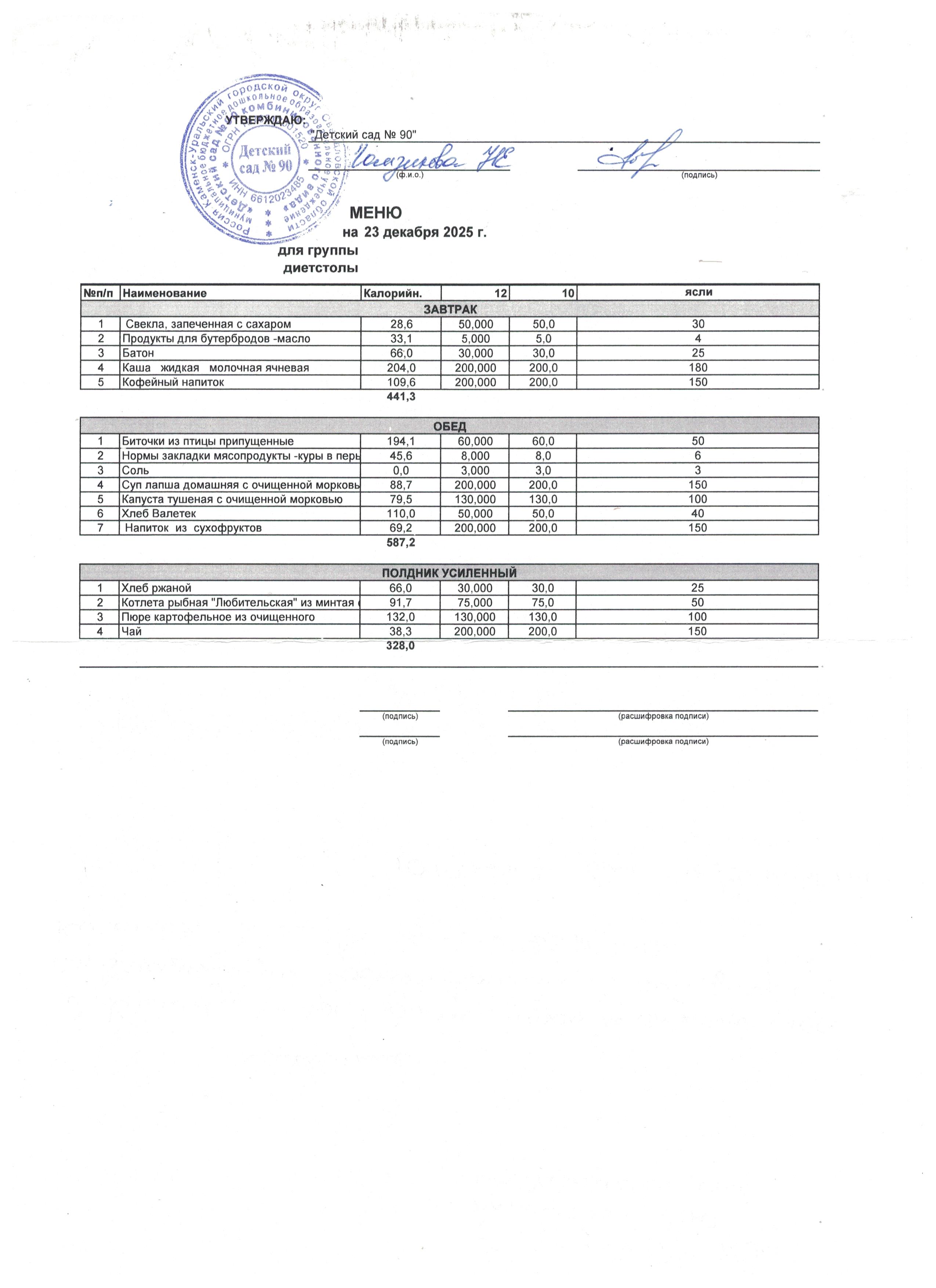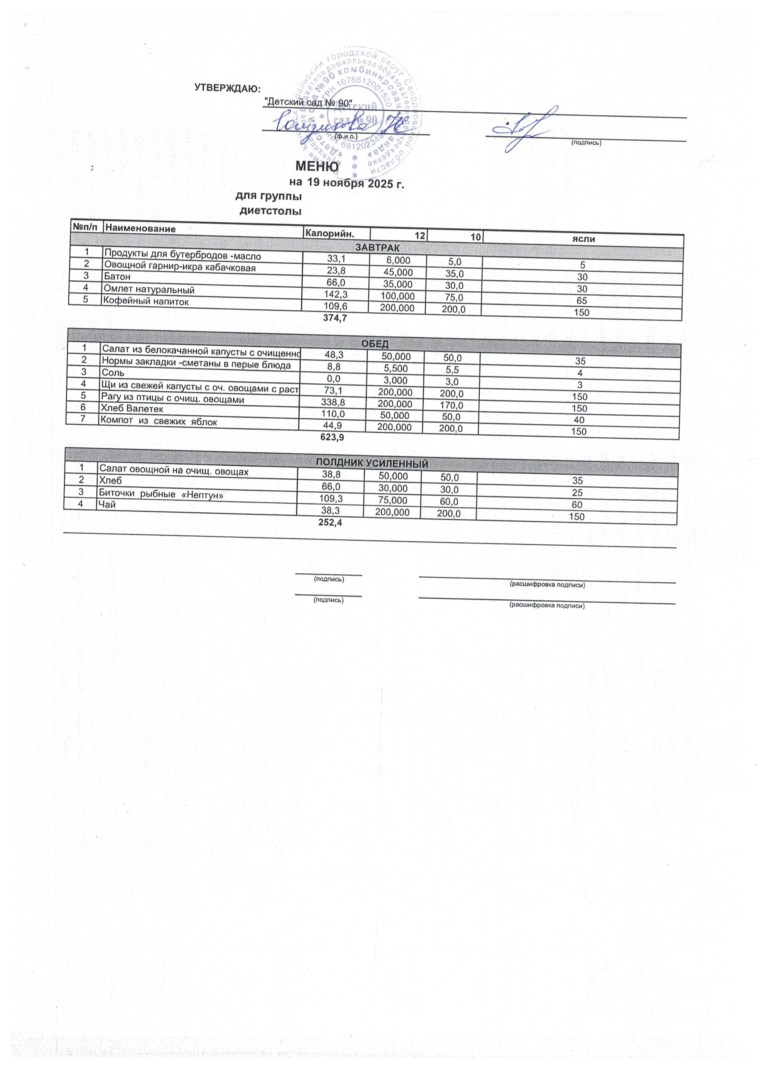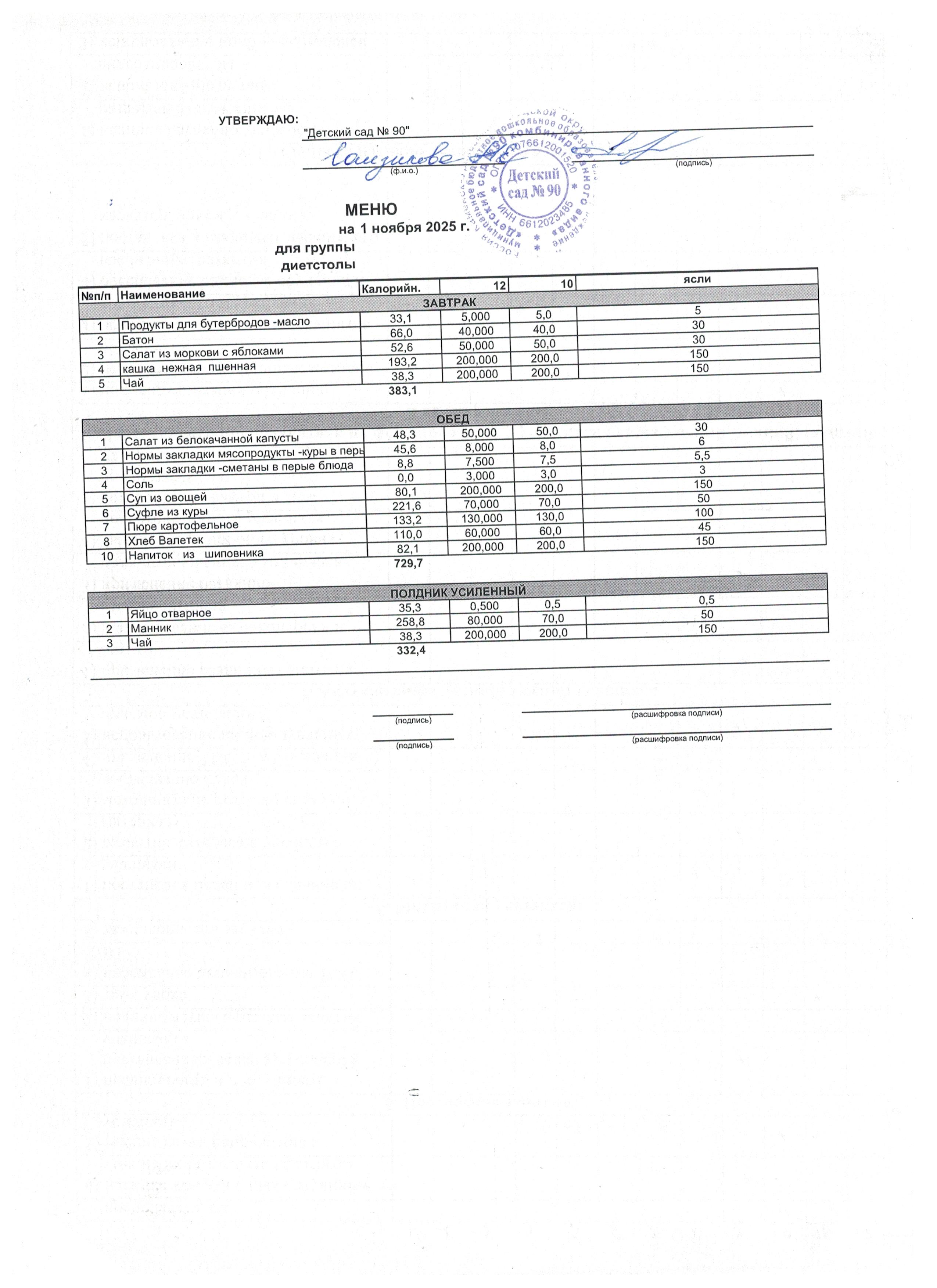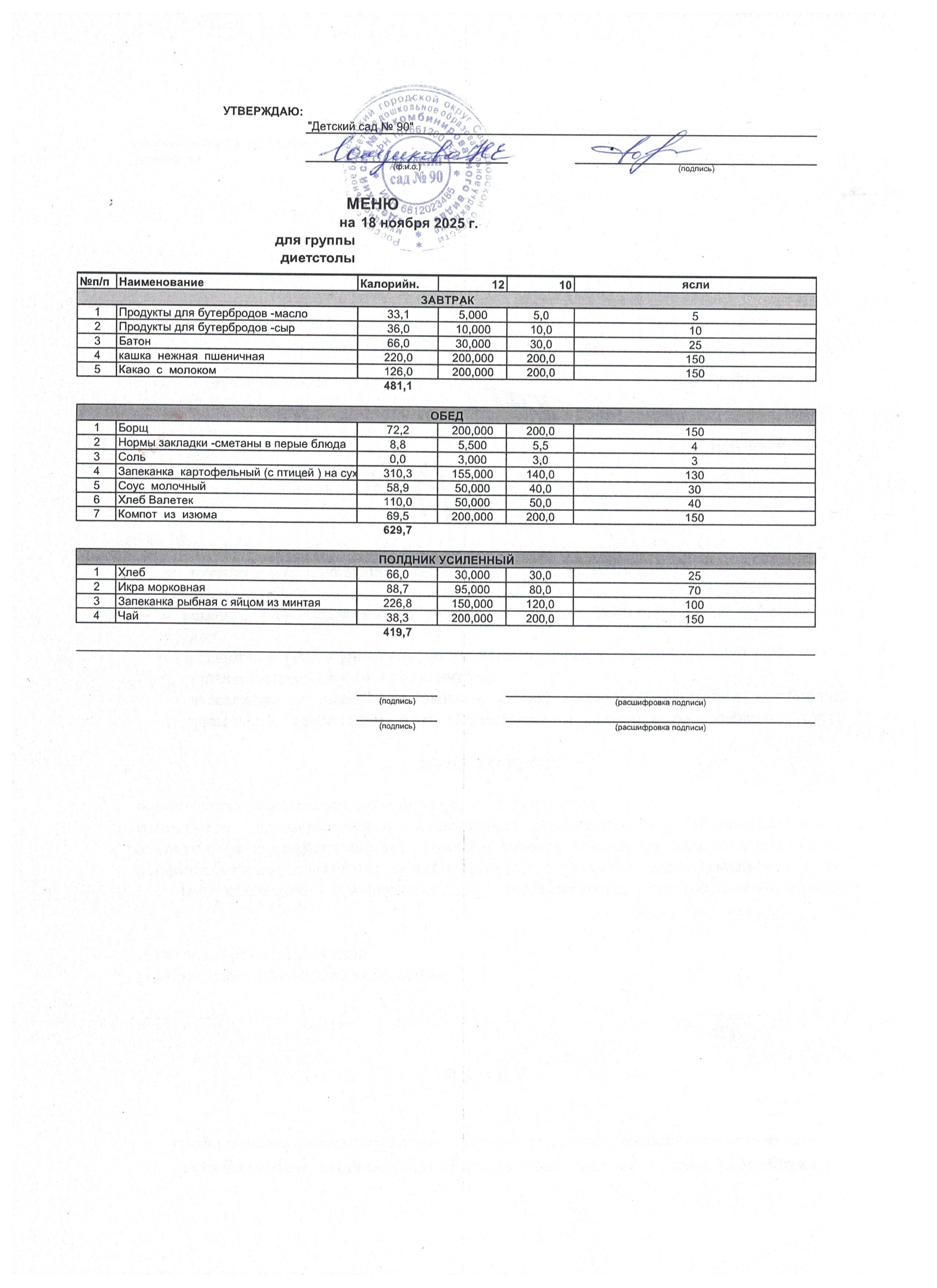 2) выдача детям рационов питания осуществляться в соответствии с утвержденными индивидуальными меню, под контролем ответственных лиц, назначенных в детском саду.