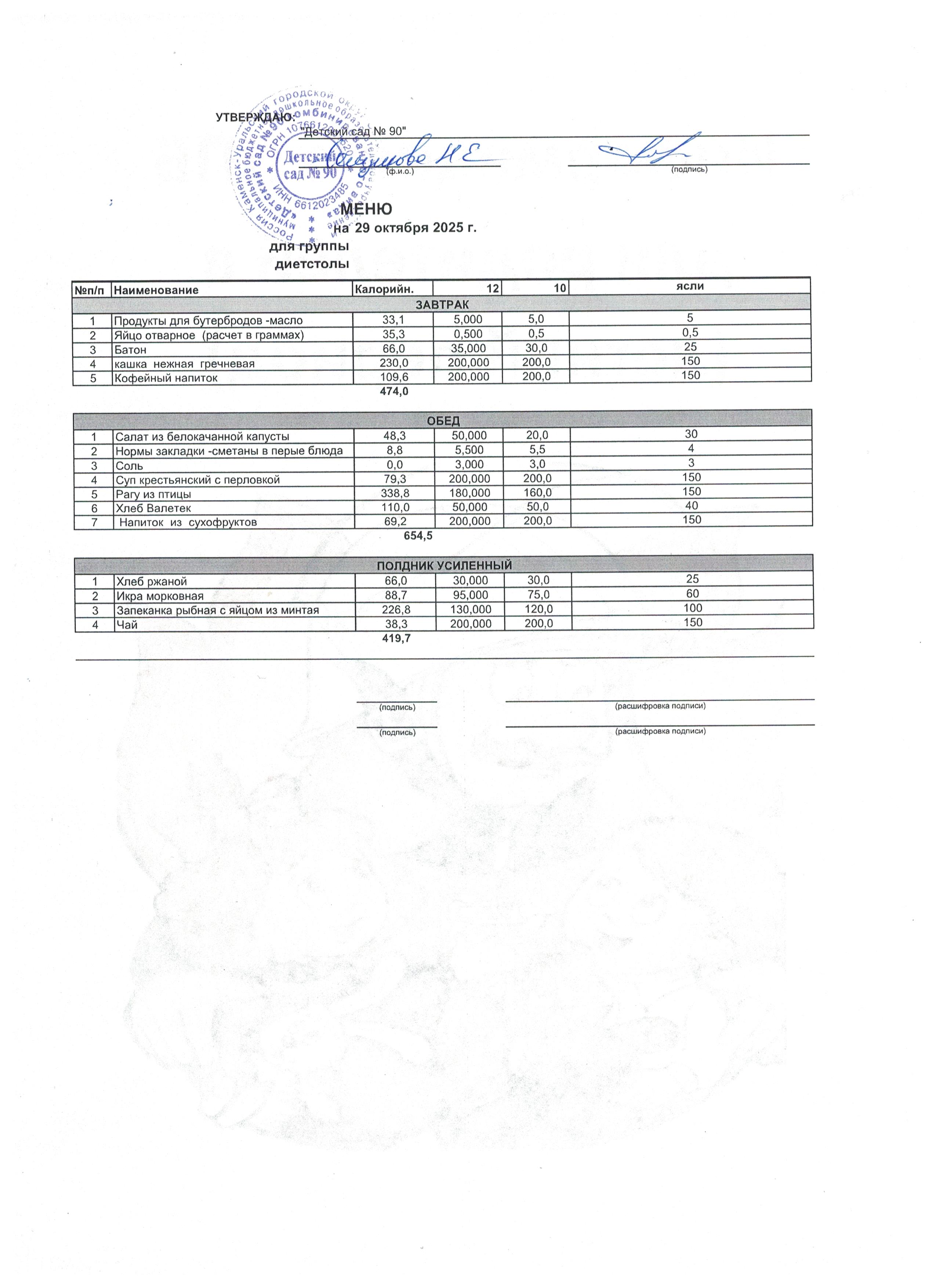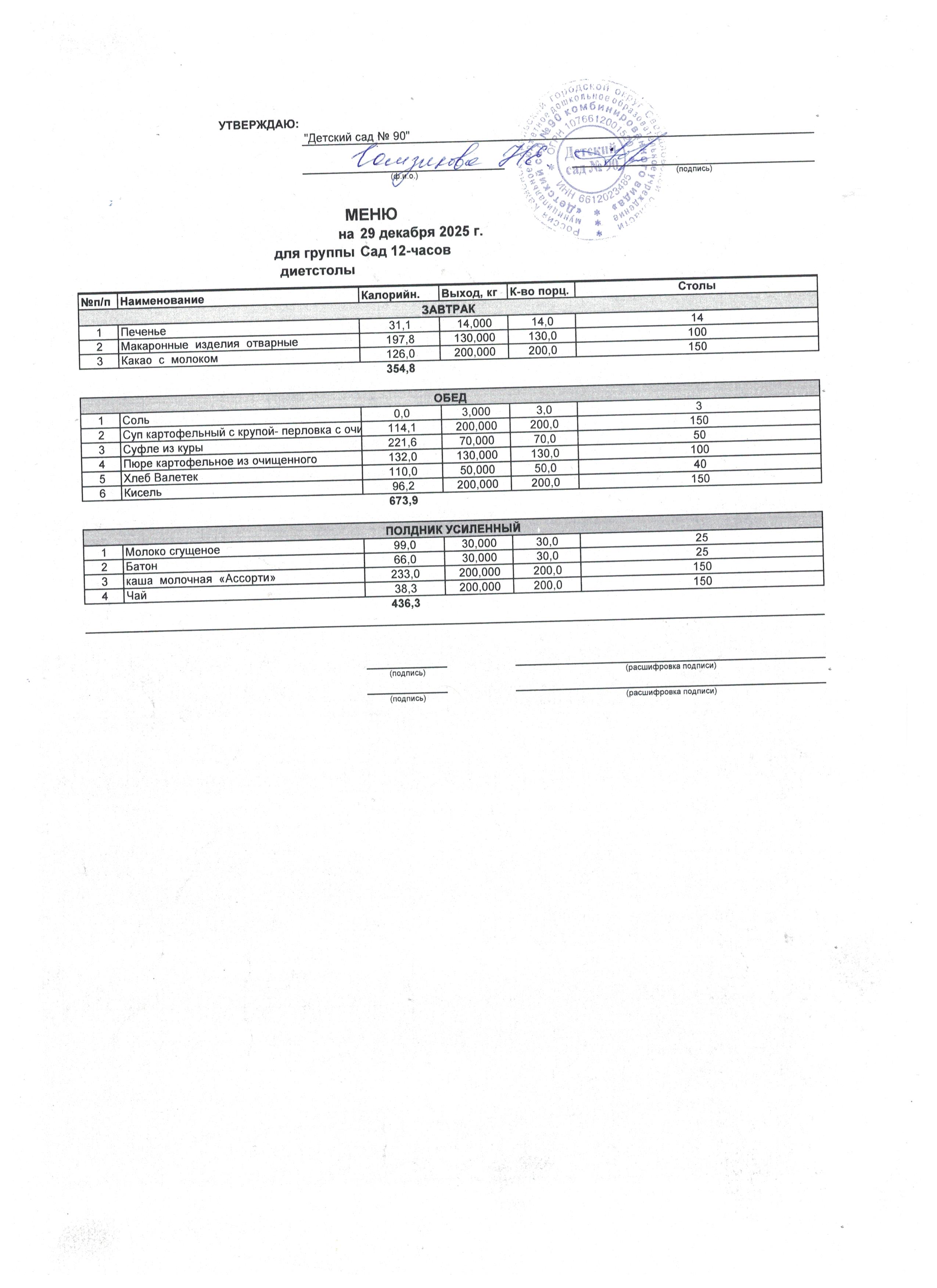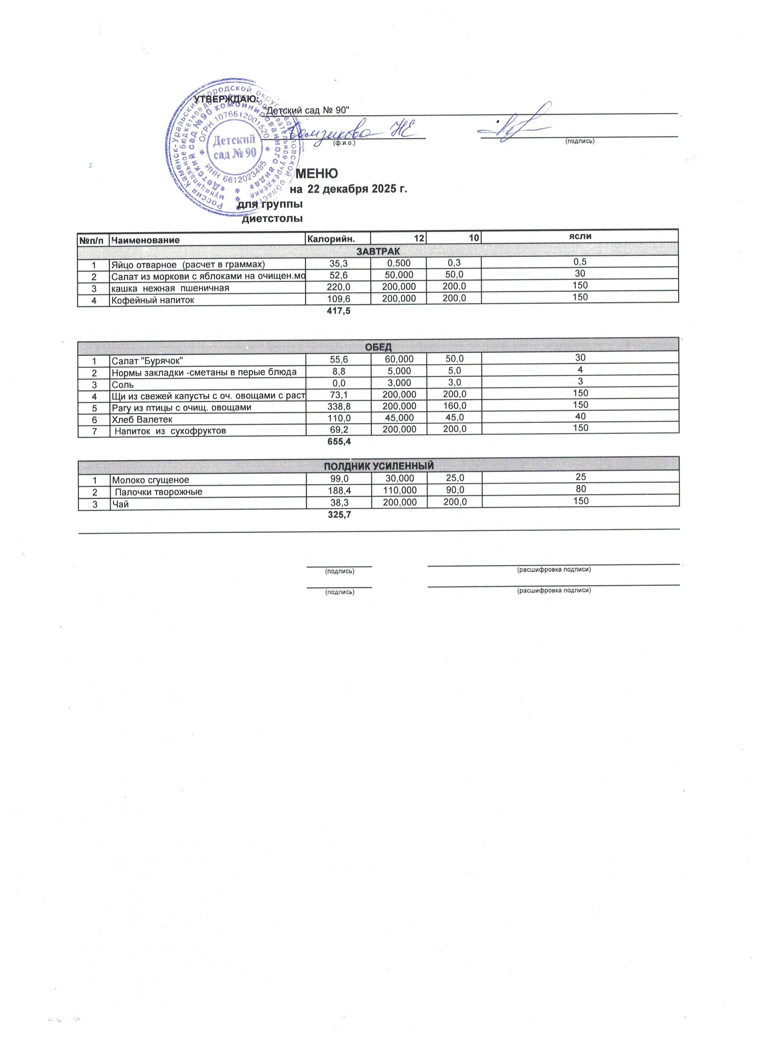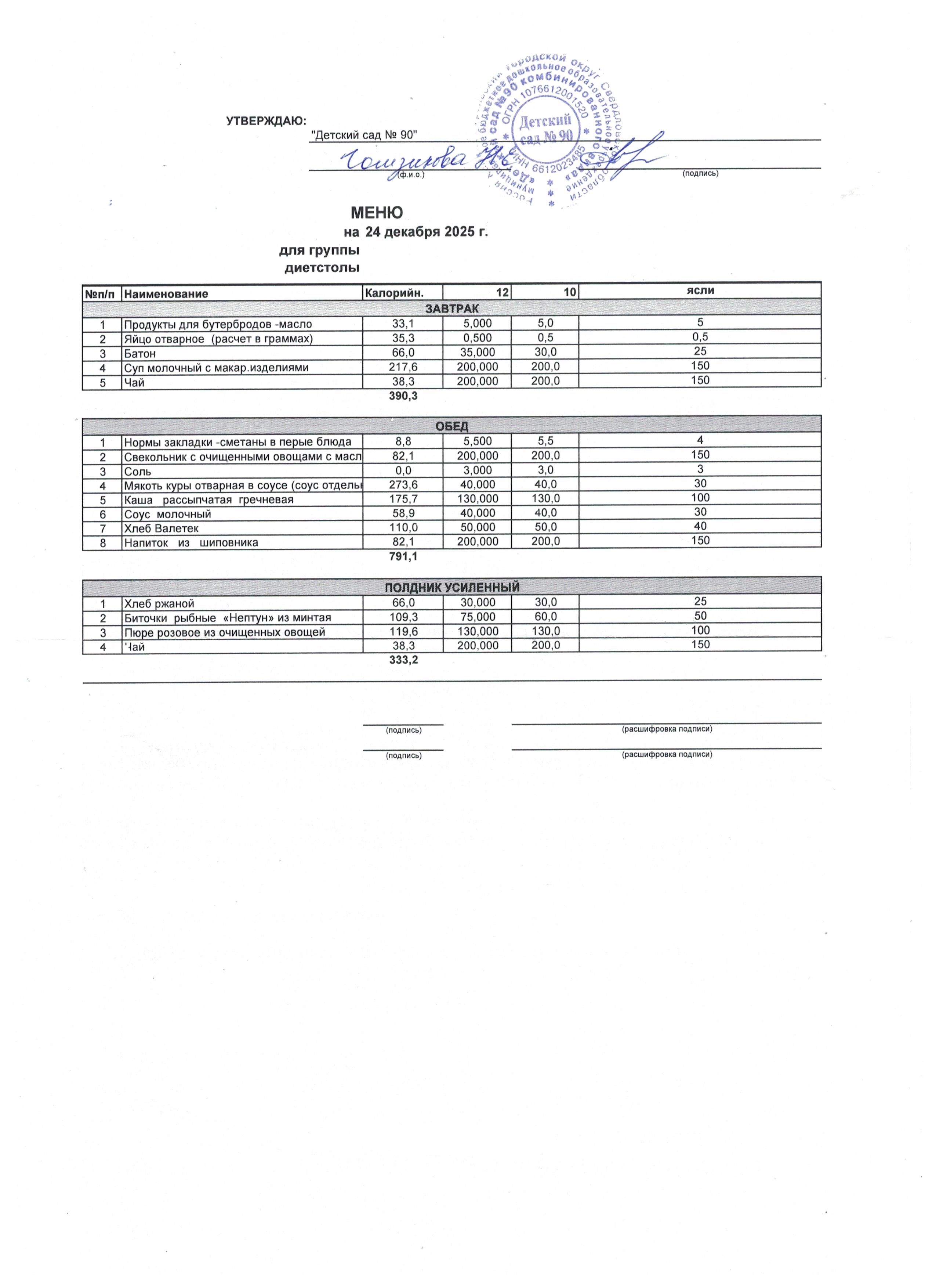 2) выдача детям рационов питания осуществляться в соответствии с утвержденными индивидуальными меню, под контролем ответственных лиц, назначенных в детском саду.