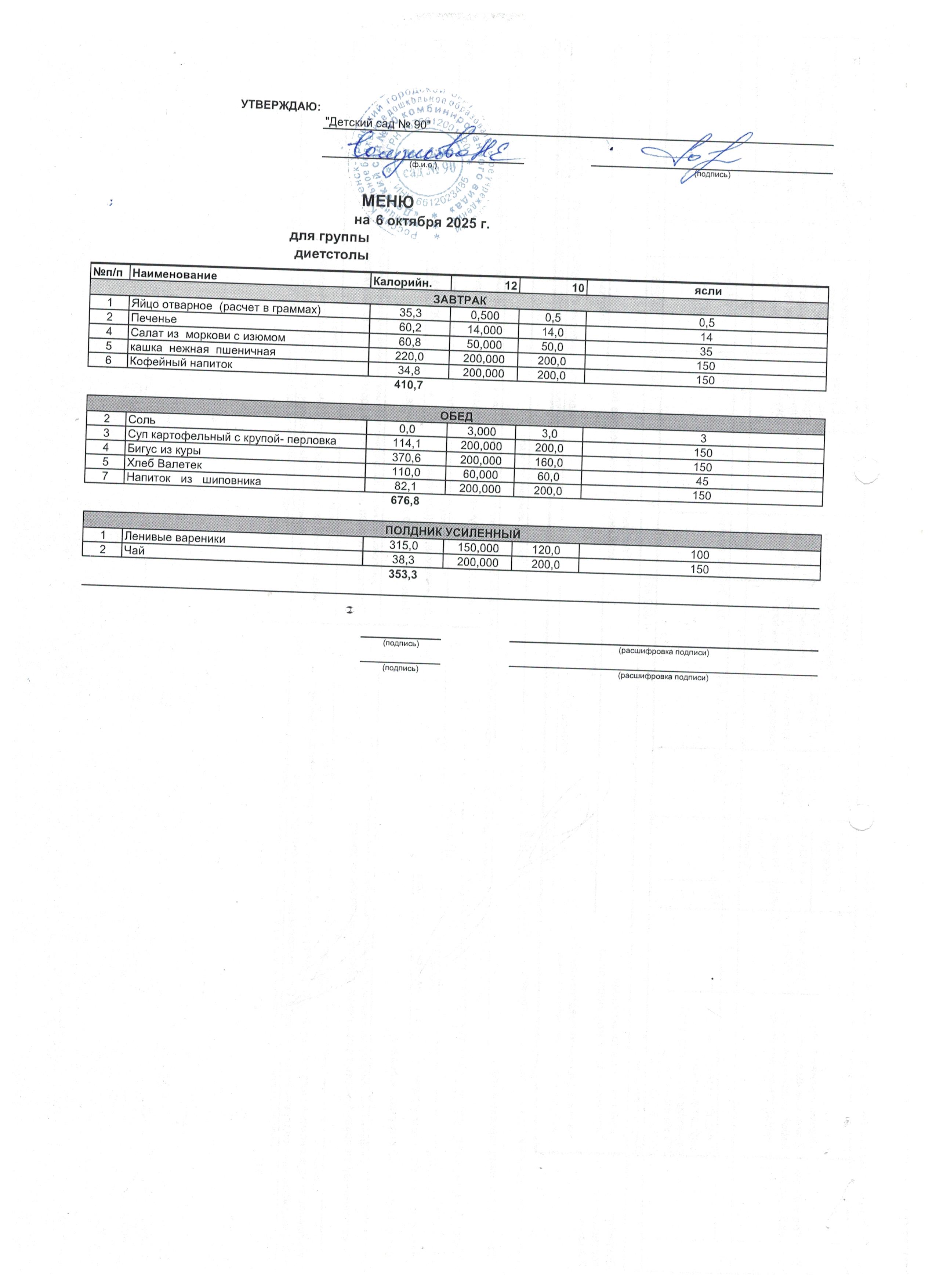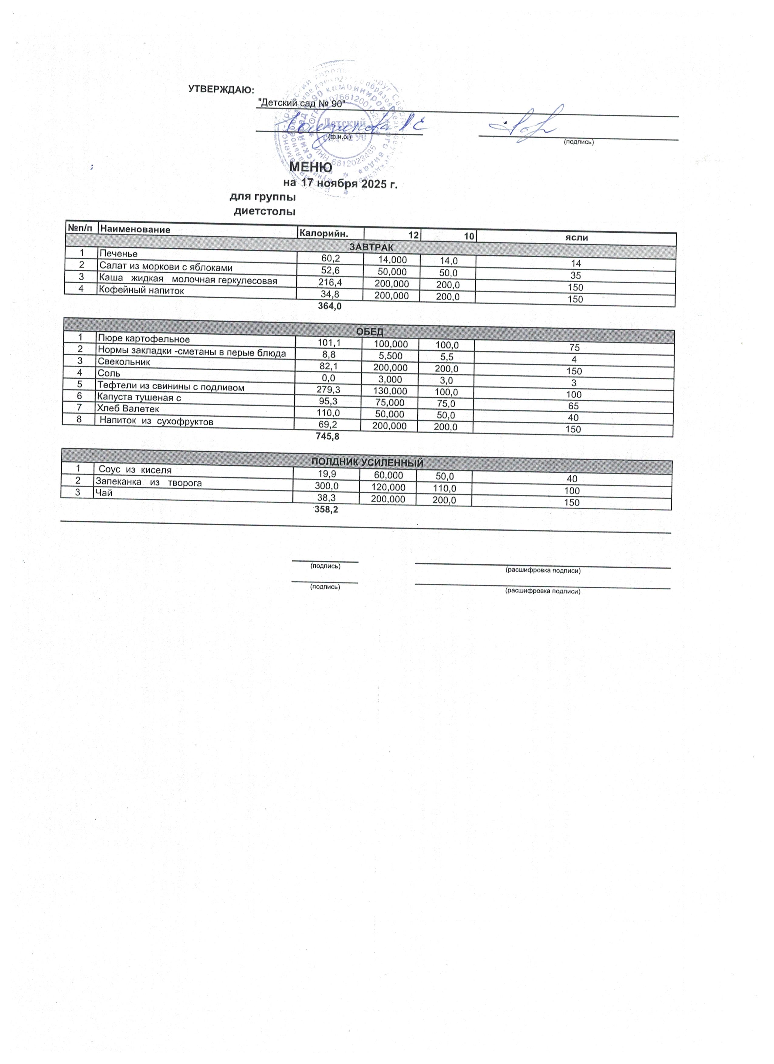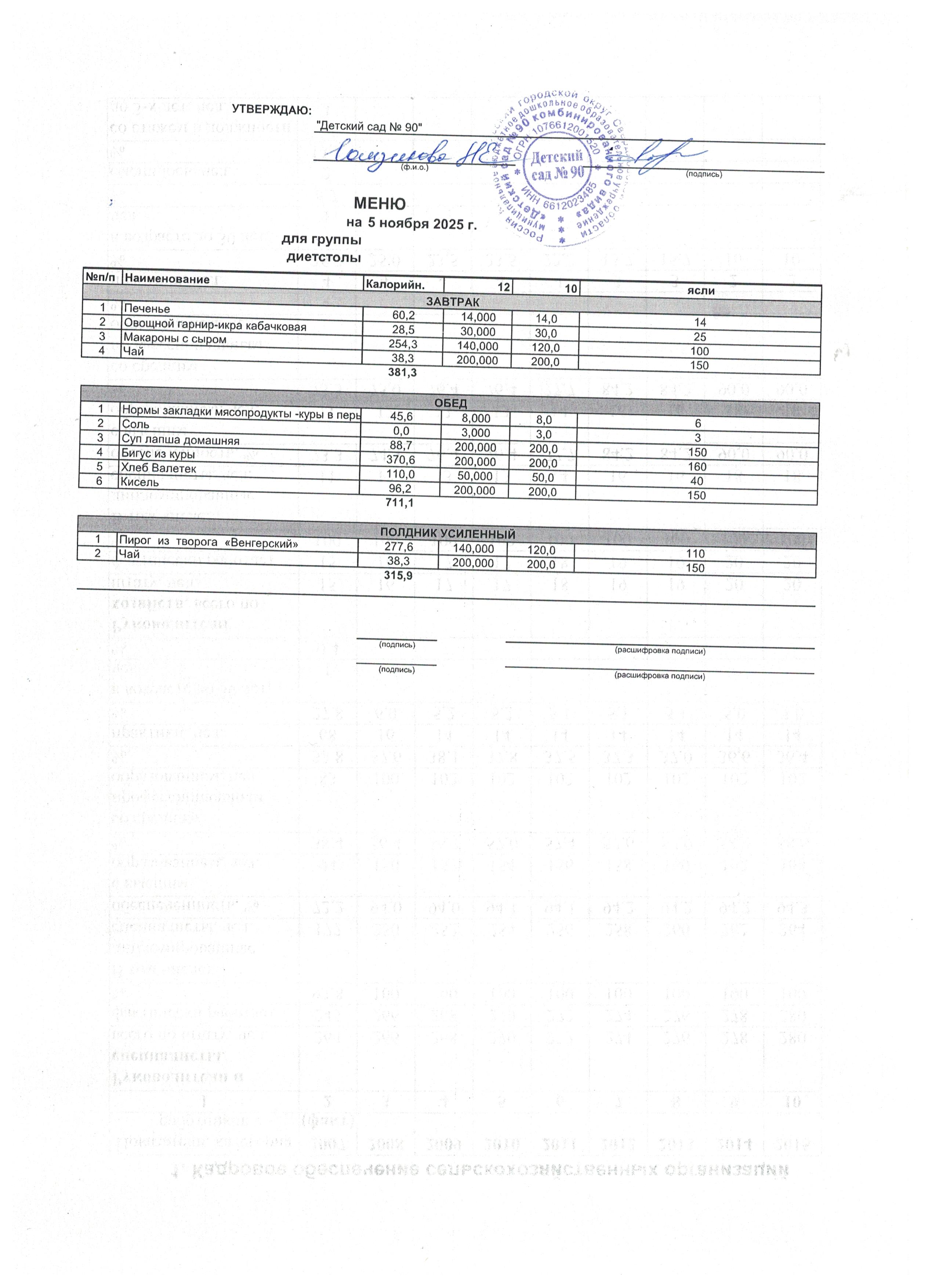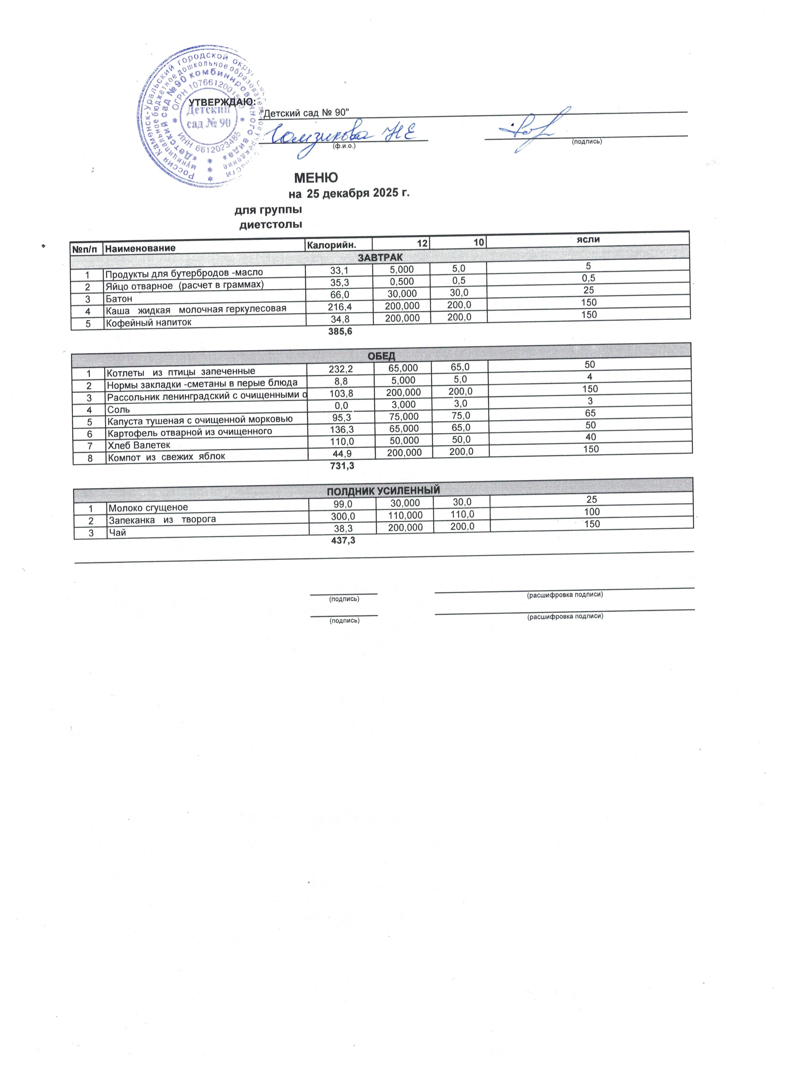 Для оценки эффективности питания ежемесячно ведется подсчет калорийности.